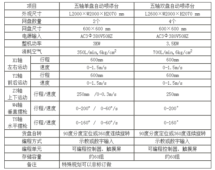1.手机外壳五轴喷涂机五轴即:X1轴喷枪左右运动,Y2轴喷枪前后运动,Z3轴喷枪上下运动,W4轴喷枪垂直方向摆动,T5轴喷枪水平方向摆动。
